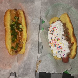 Can’t wait to try some new flavors. Loved the Wolverine and my creation (Combat Carl): peanut butter, mayo, cheddar, and bacon topped with jalapeños.